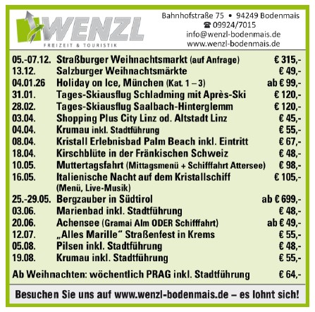 Heute waren wir mit Wenzl-Busreisen in Prag, gestartet aus Lam. Super Busfahrer, der unterwegs viel erklärt hat. Auch worauf man achten muss (Umtausch, Nepp, Insider-Tipps) Tolle Reiseführer vor Ort. Hat alles super geklappt, wir würden über Wenzl-Reisen sofort wieder buchen. Ein gelungener Tag