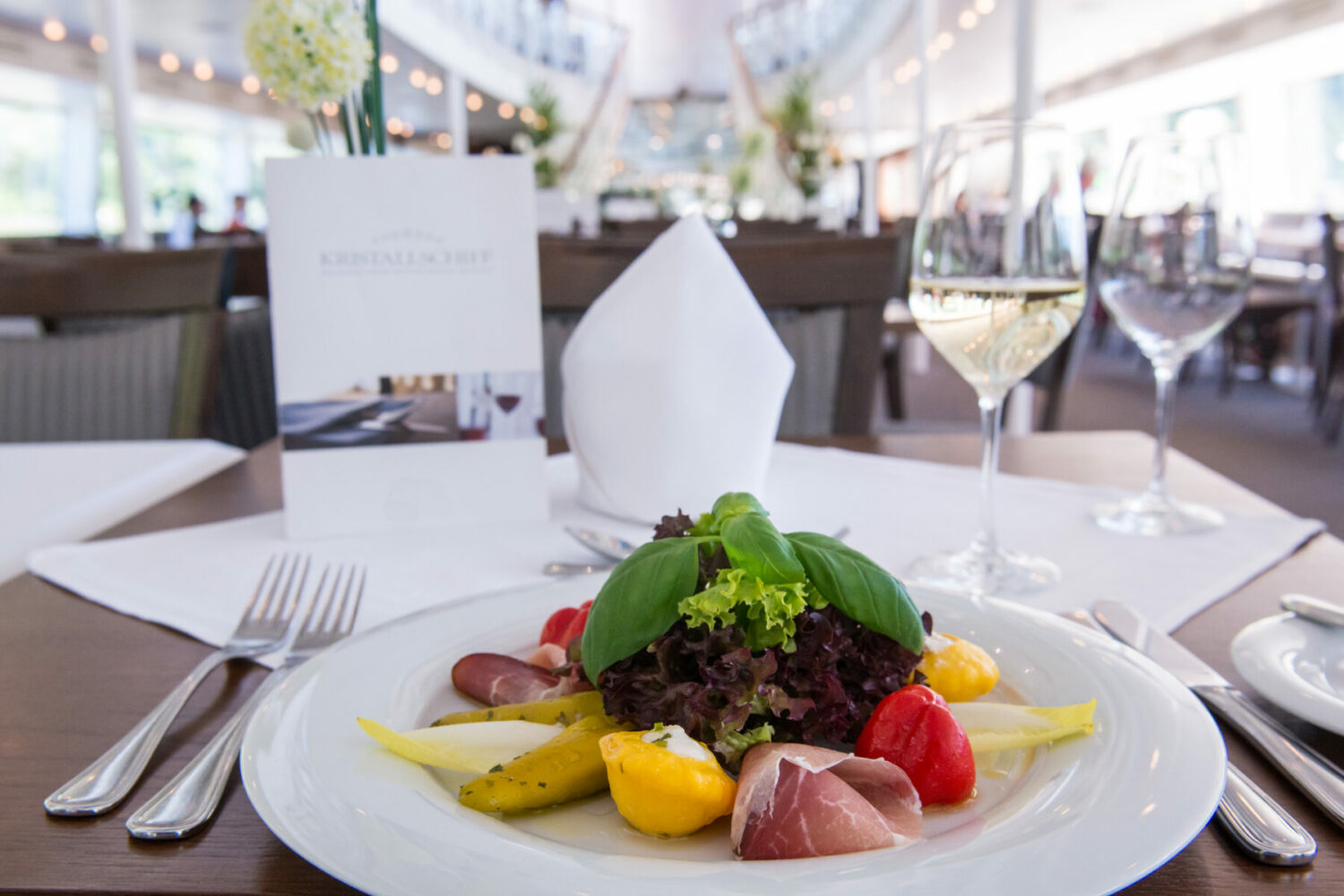 Vielleicht haben Sie ja auch Lust, zu der beschwingten Musik das Tanzbein zu schwingen? Oder Sie genießen einfach bei einem guten Glas Wein die Schifffahrt.