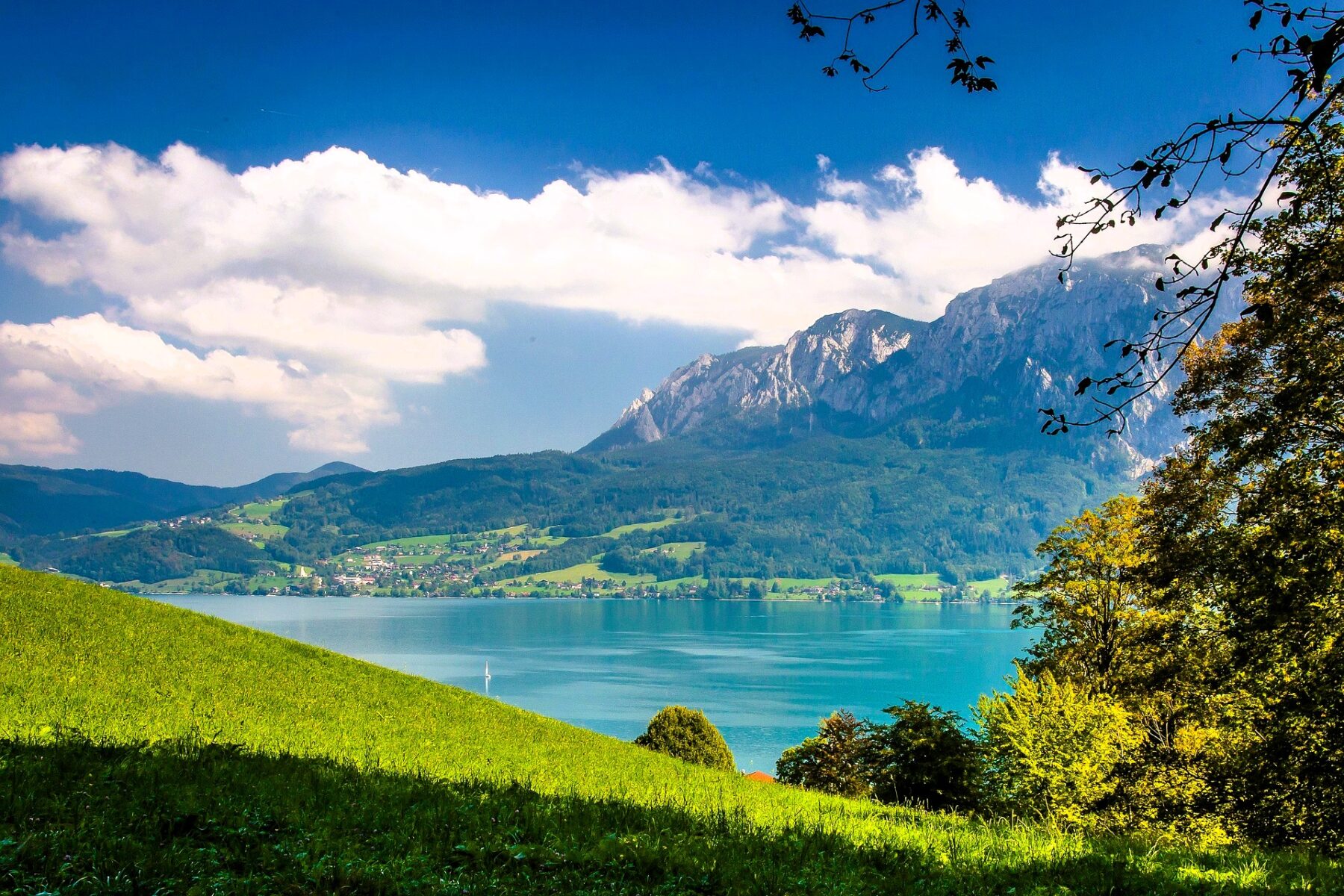 Gestärkt geht es jetzt weiter, und neugierig auf den von sanften Hügeln mit blühenden Obstbäumen und saftig grünen Wiesen eingerahmten Attersee. Die Berge rücken in den Hintergrund und besonders die Gipfel des Höllengebirges prägen im Süden das idyllische Bild.